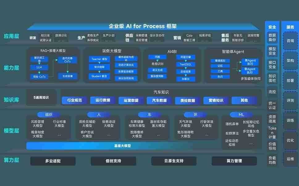 端到端的一站式AI工作空间深度融合了从企业战略规划到日常经营的全流程业务板块,,,定向解决车企内部领域多、、部门多、、、链条长、、场景碎片化等难题,,支持车企快速构建以AI为核心的生产力写作体系,,,实现任务执行与AI能力的无缝集成与交互